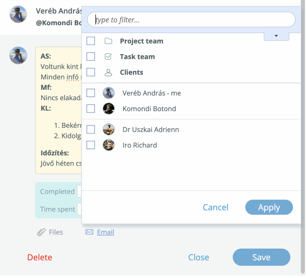 Nem kell egymást kérdezgetni, visszakeresni, pingelni — a rendszer mutatja, hogy a projektet végző tudja a feladatát és nincs elakadása. Ha pedig van azt is és a kért segítségre adott várható válaszokat is.