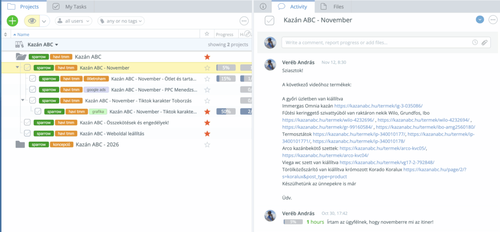 A projektmenedzsment mindenek az alapja! Mindig ezen a felületen keresztül rendelünk bármilyen gyártást. Ebből kell látnia a munkát végzőnek, hogy mi a feladata.