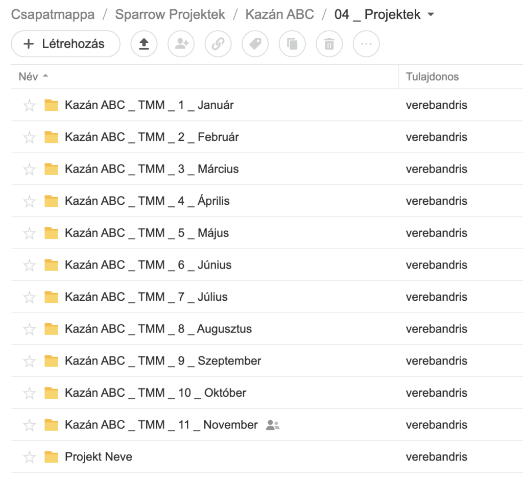 Minden hónapban történik gyártás aminek alapjanyagjai és kész termékei is vannak. Ezeket kötelező minden hónapban ugyan abban a mappa sablonban létrehozni. Miért? Mert csak és kizárólag így lesz visszakövethető és így tudunk hatékonyan együtt dolgozni.